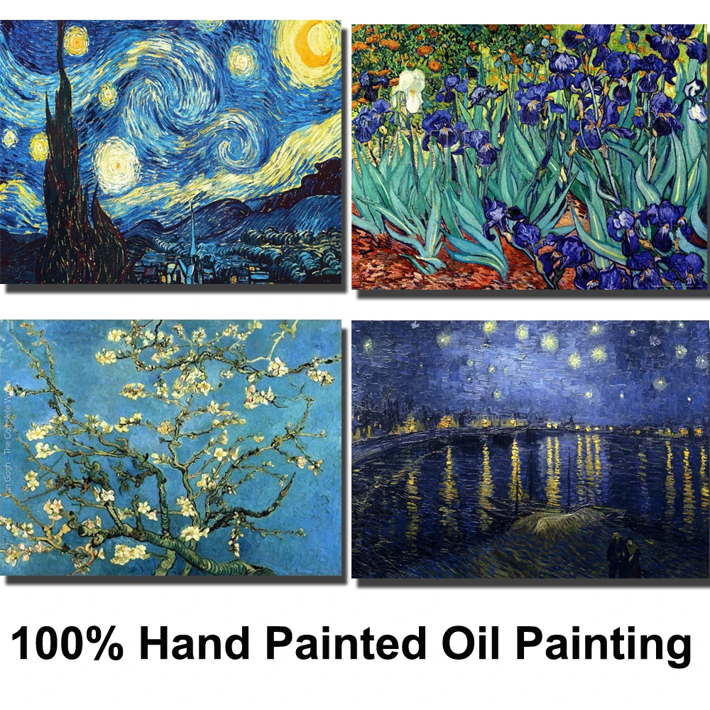 Lukisan Tangan Kanvas Seni Dinding Van Gogh Lukisan Terkenal Malam Berbintang Bidang Gandum Pemandangan Modern Iris Minyak Karya Seni Dekorasi Rumah Painting Calligraphy Aliexpress